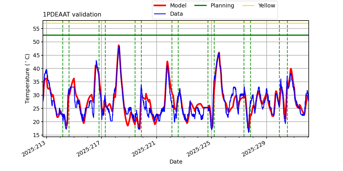 Note: 1PDEAAT residual histograms include only points where 1PDEAAT >= 30.0 C in blue and points where 1PDEAAT >= 40.0 C in red.