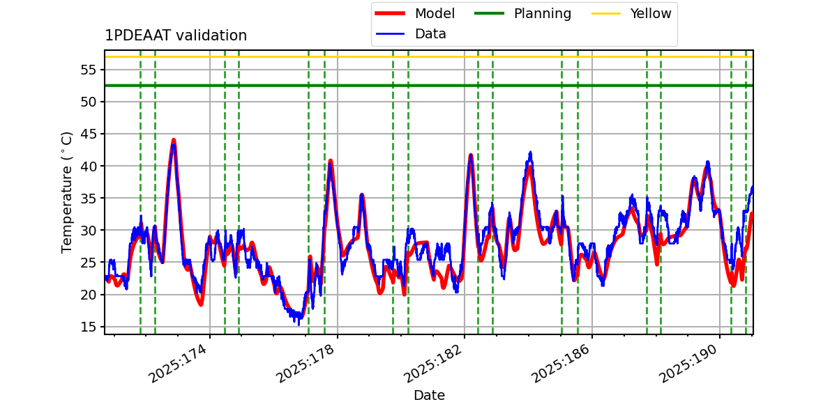 Note: 1PDEAAT residual histograms include only points where 1PDEAAT >= 30.0 C in blue and points where 1PDEAAT >= 40.0 C in red.