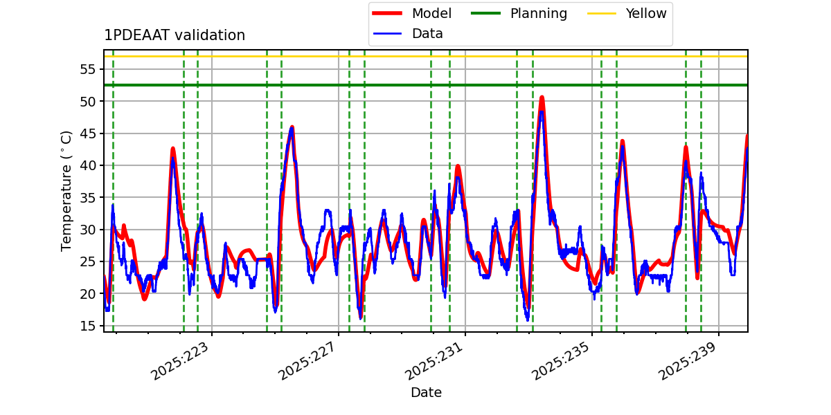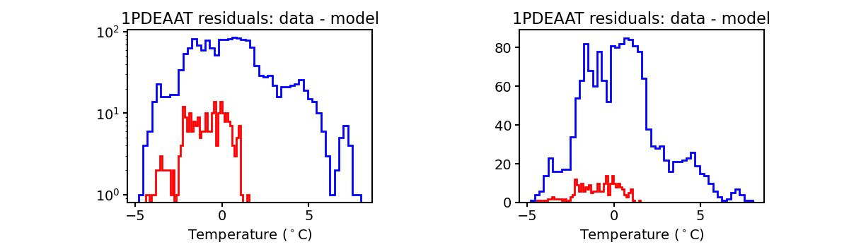 Note: 1PDEAAT residual histograms include only points where 1PDEAAT >= 30.0 C in blue and points where 1PDEAAT >= 40.0 C in red.