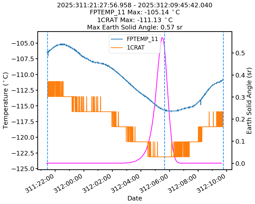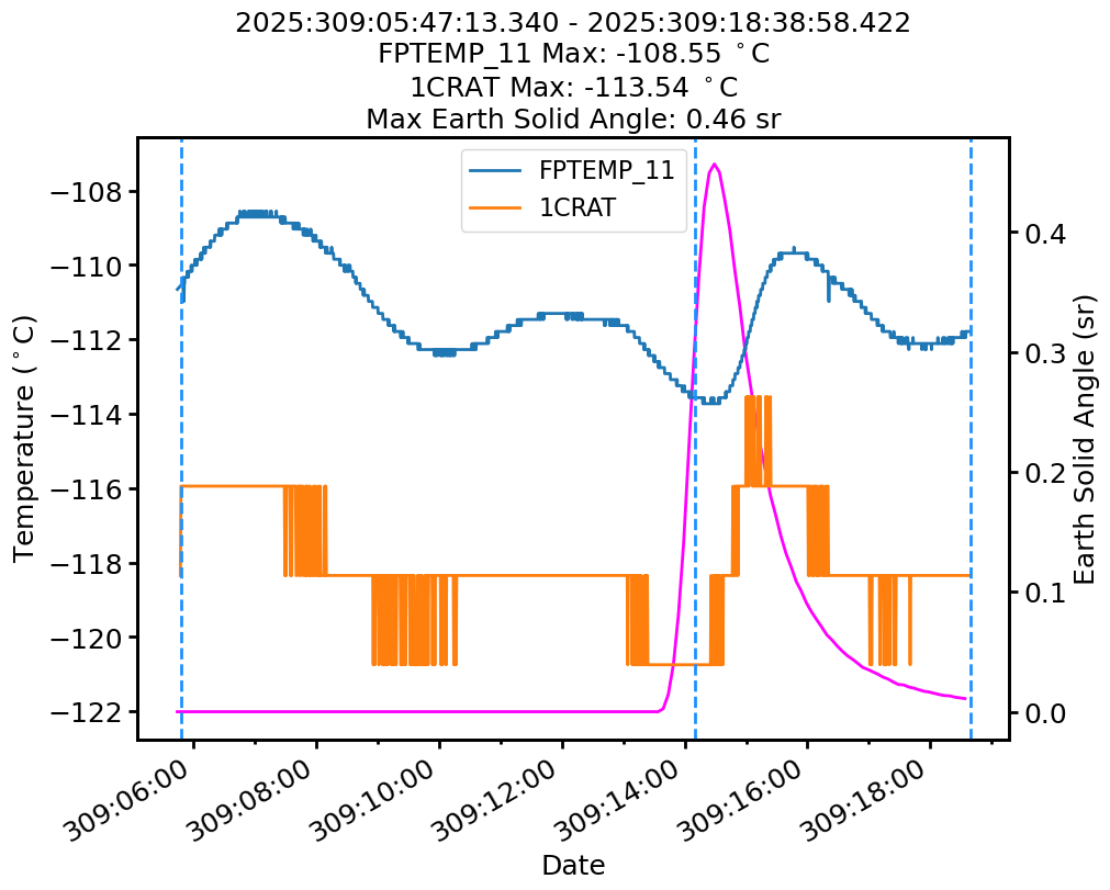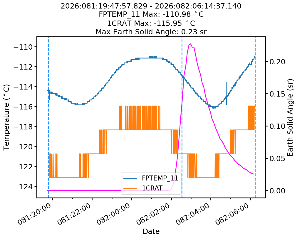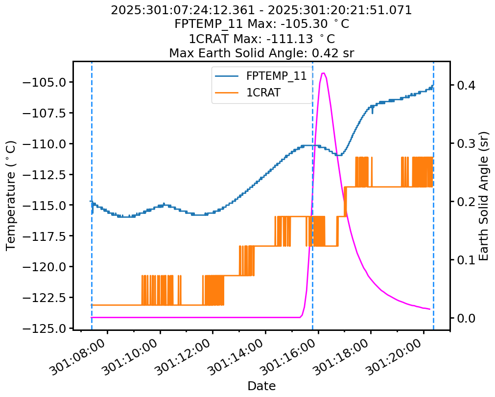 | Date | FPTEMP Max (°C) | 1CRAT Max (°C) |
