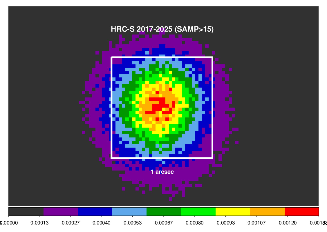 Furthermore, there is indication that the PSF has changed subtly over the mission. For example, the PSF "artefact" appears to have developed over the 2004-2006 time frame (see Juda & Karovska 2009, 2010; Kashyap 2010). We thus provide versions of the empirical PSF covering different epochs. Specifically, we compute PSFs covering the years 2000-2005, 2006-2017, and 2017-2025.