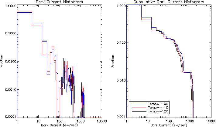 Monitor windows selected to track specific regions of the CCD have been scheduled into perigee pass observations since the APR2803 week. Below are pre-cool and post-cool histograms of warm pixels (>100 e-/s) in an 8x8 region of the CCD centered on y-angle=2306, z-angle=-1290 (row = -254.5, col = -494.5).