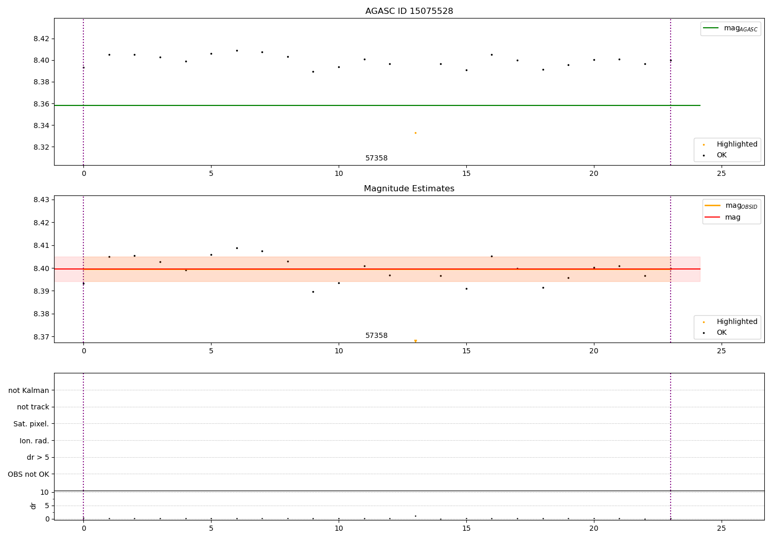 | OBSID | Time | Row | Col | N | Nok | Nout | ftrack | fdr3 | fdr5 | fok | ⟨ δ mag ⟩ 100s | ⟨ mag ⟩ | σmag | Comments |