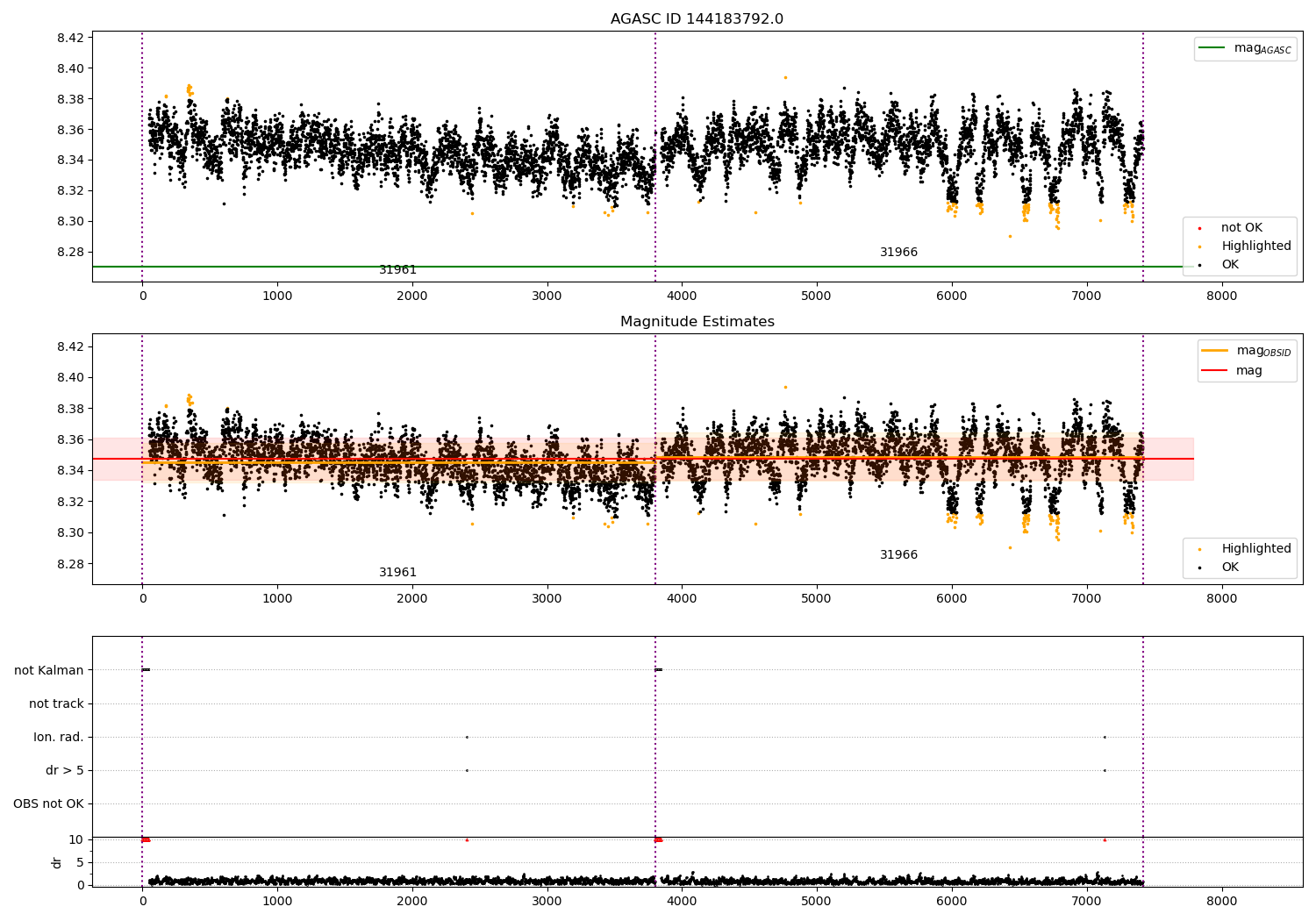- Kalman samples: Subset of samples when ACA could be tracking stars (AOPCADMD == NPNT & AOACASEQ == KALM)