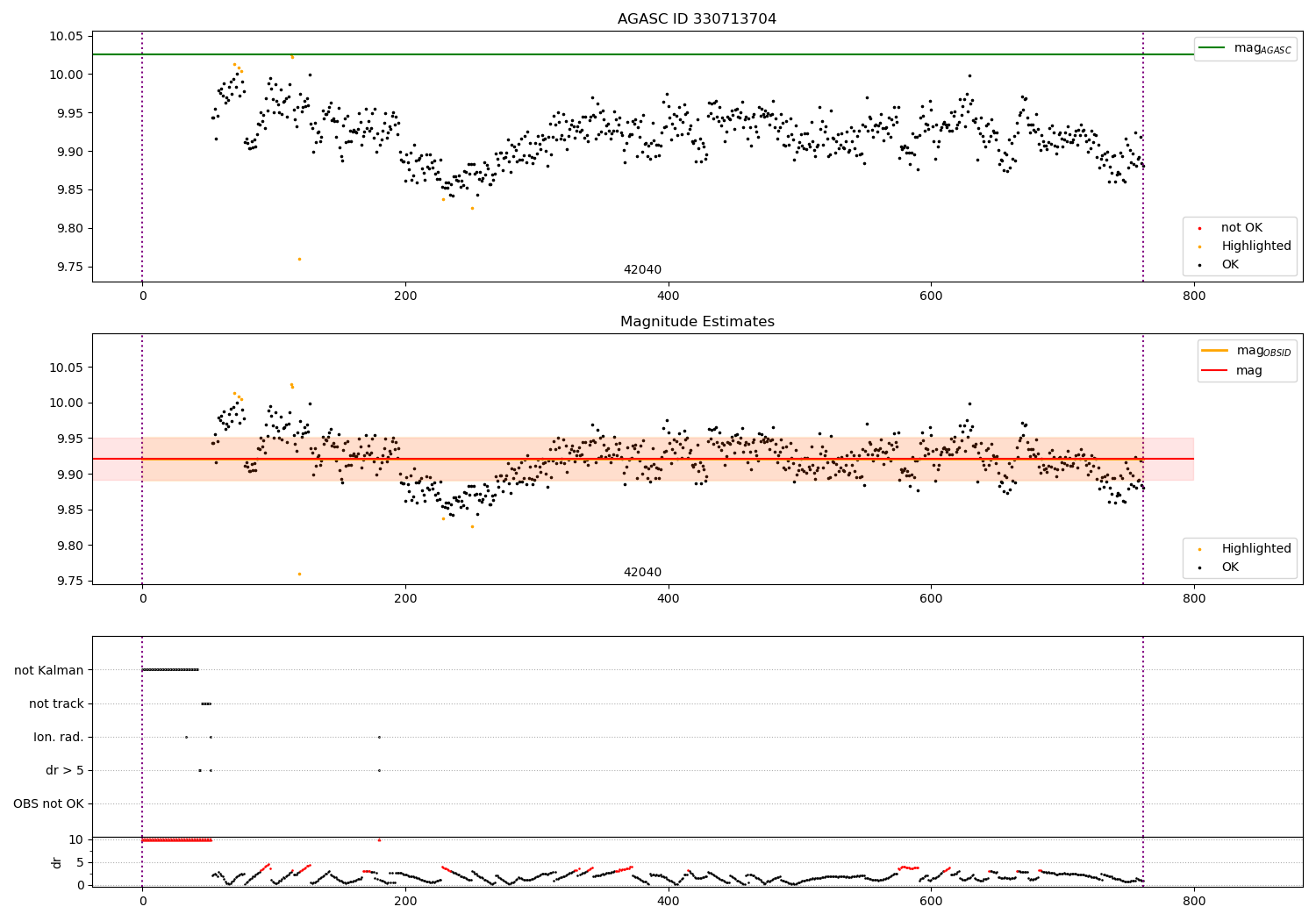 - Kalman samples: Subset of samples when ACA could be tracking stars (AOPCADMD == NPNT & AOACASEQ == KALM)