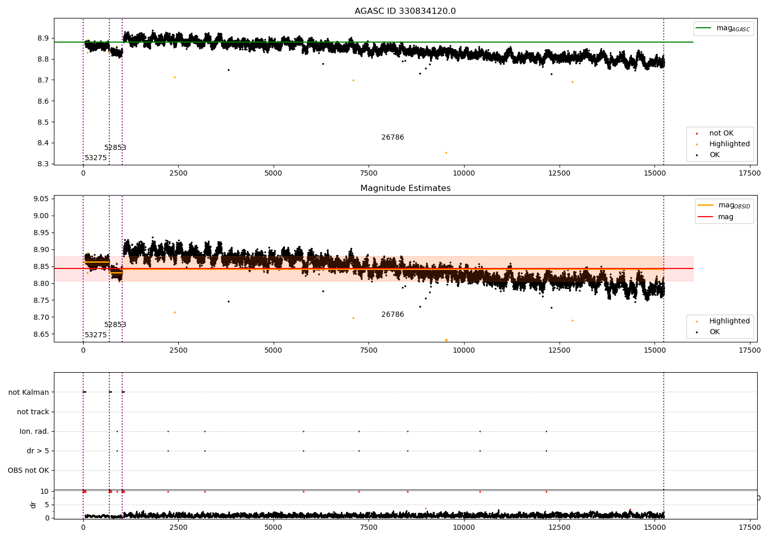 - Kalman samples: Subset of samples when ACA could be tracking stars (AOPCADMD == NPNT & AOACASEQ == KALM)