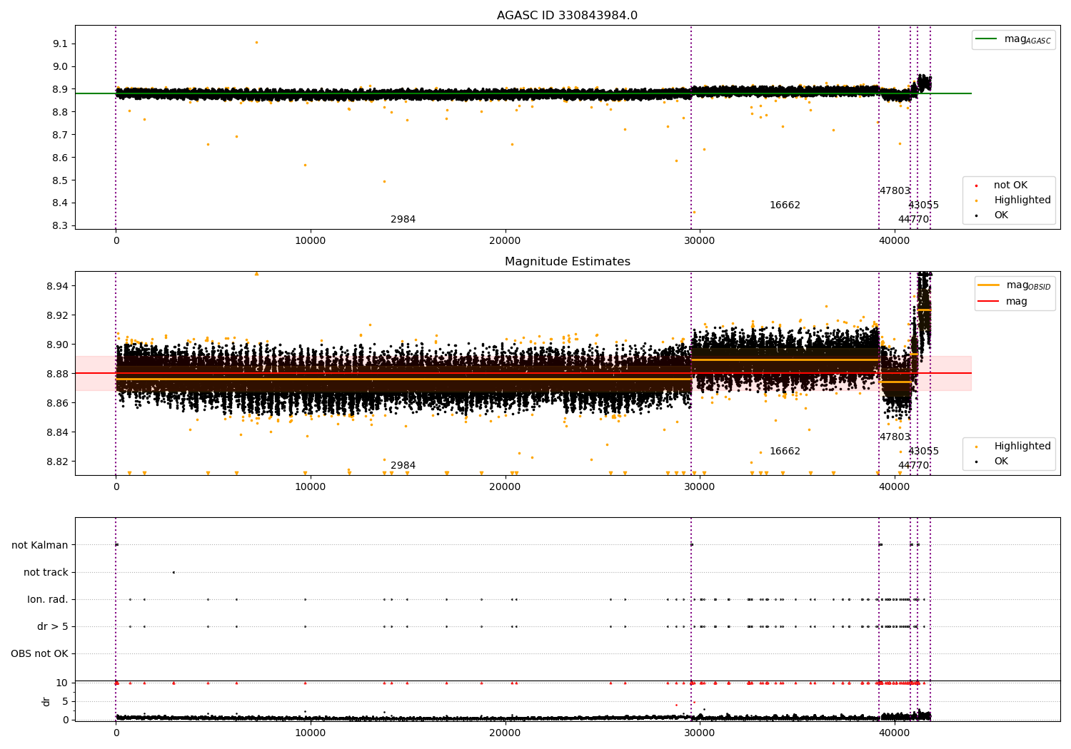 - Kalman samples: Subset of samples when ACA could be tracking stars (AOPCADMD == NPNT & AOACASEQ == KALM)