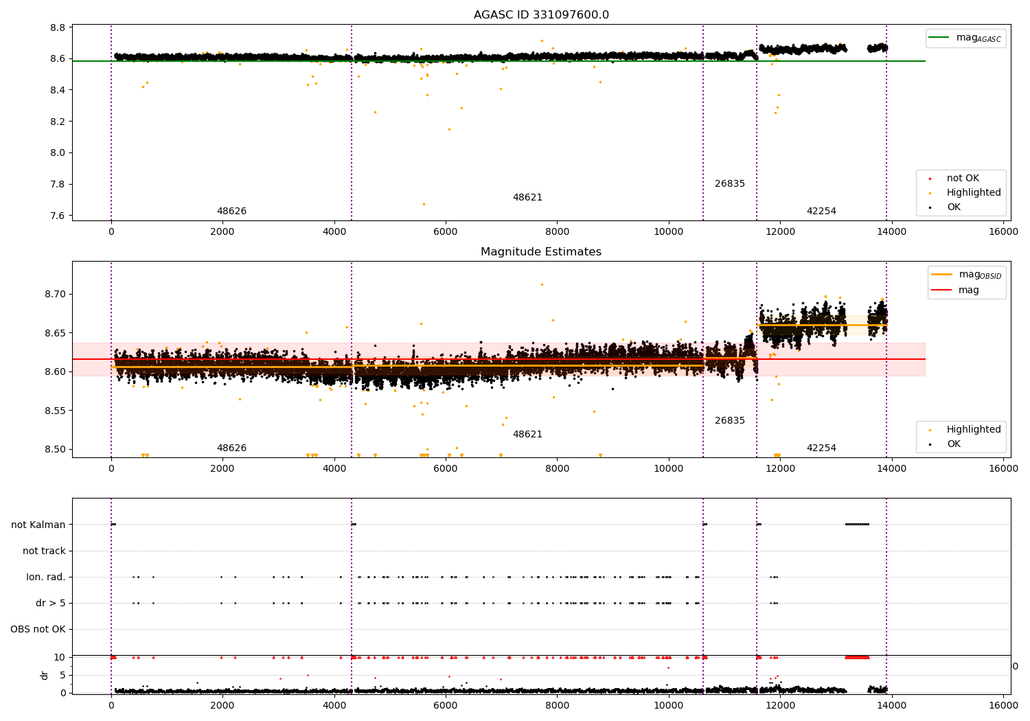 - Kalman samples: Subset of samples when ACA could be tracking stars (AOPCADMD == NPNT & AOACASEQ == KALM)