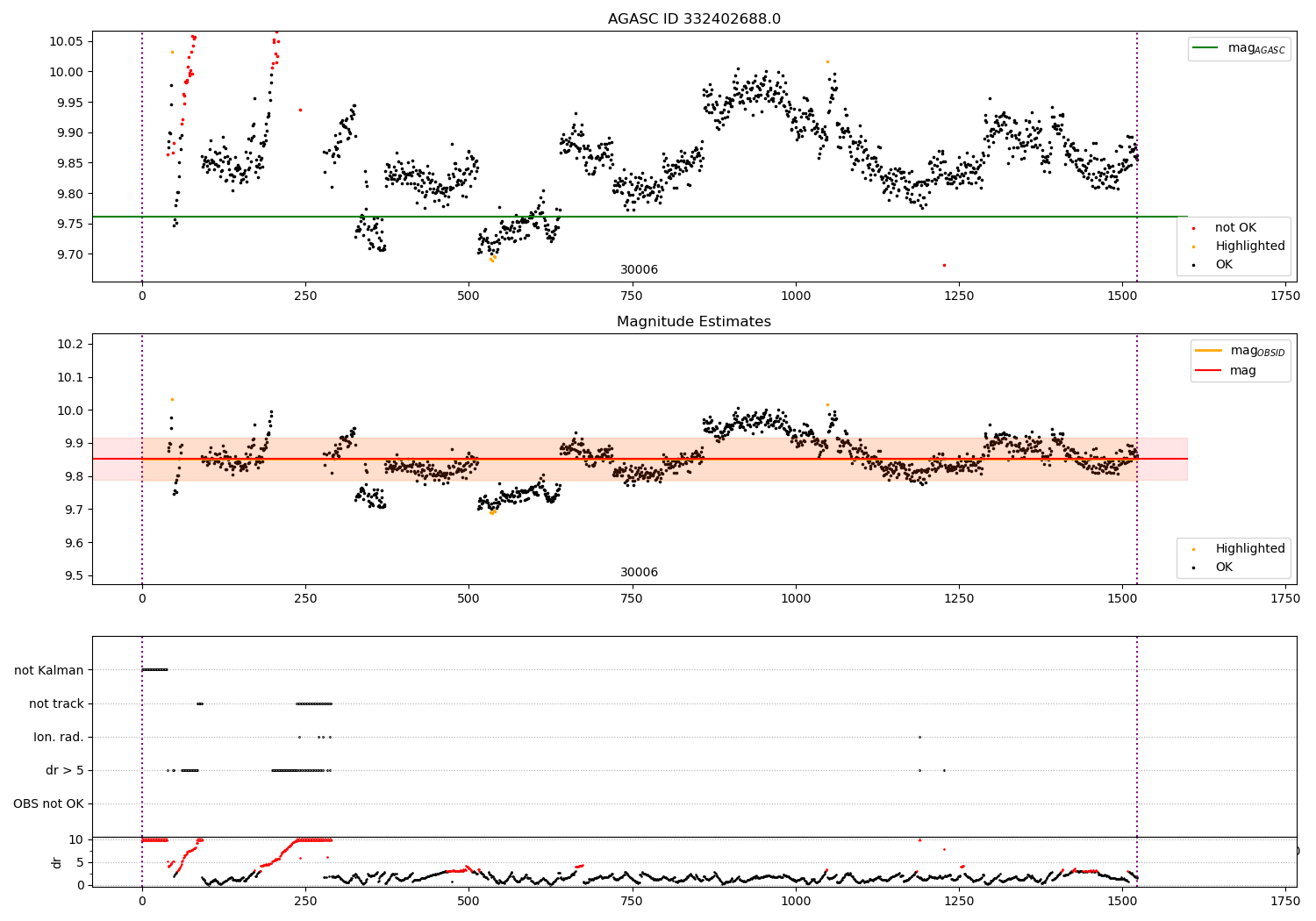 - Kalman samples: Subset of samples when ACA could be tracking stars (AOPCADMD == NPNT & AOACASEQ == KALM)