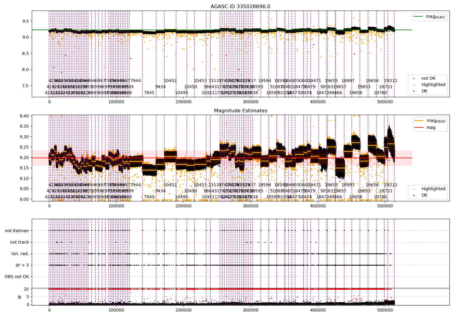 - Kalman samples: Subset of samples when ACA could be tracking stars (AOPCADMD == NPNT & AOACASEQ == KALM)