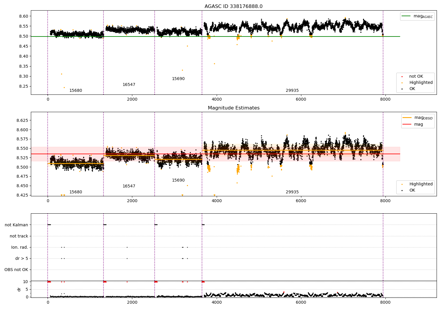 - Kalman samples: Subset of samples when ACA could be tracking stars (AOPCADMD == NPNT & AOACASEQ == KALM)