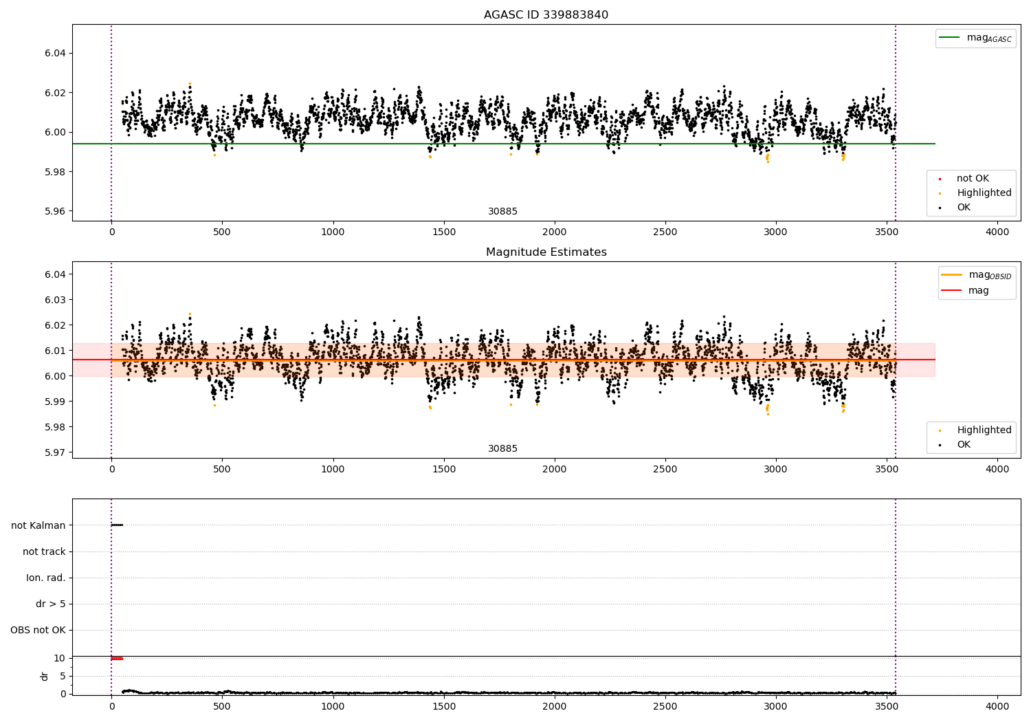 - Kalman samples: Subset of samples when ACA could be tracking stars (AOPCADMD == NPNT & AOACASEQ == KALM)