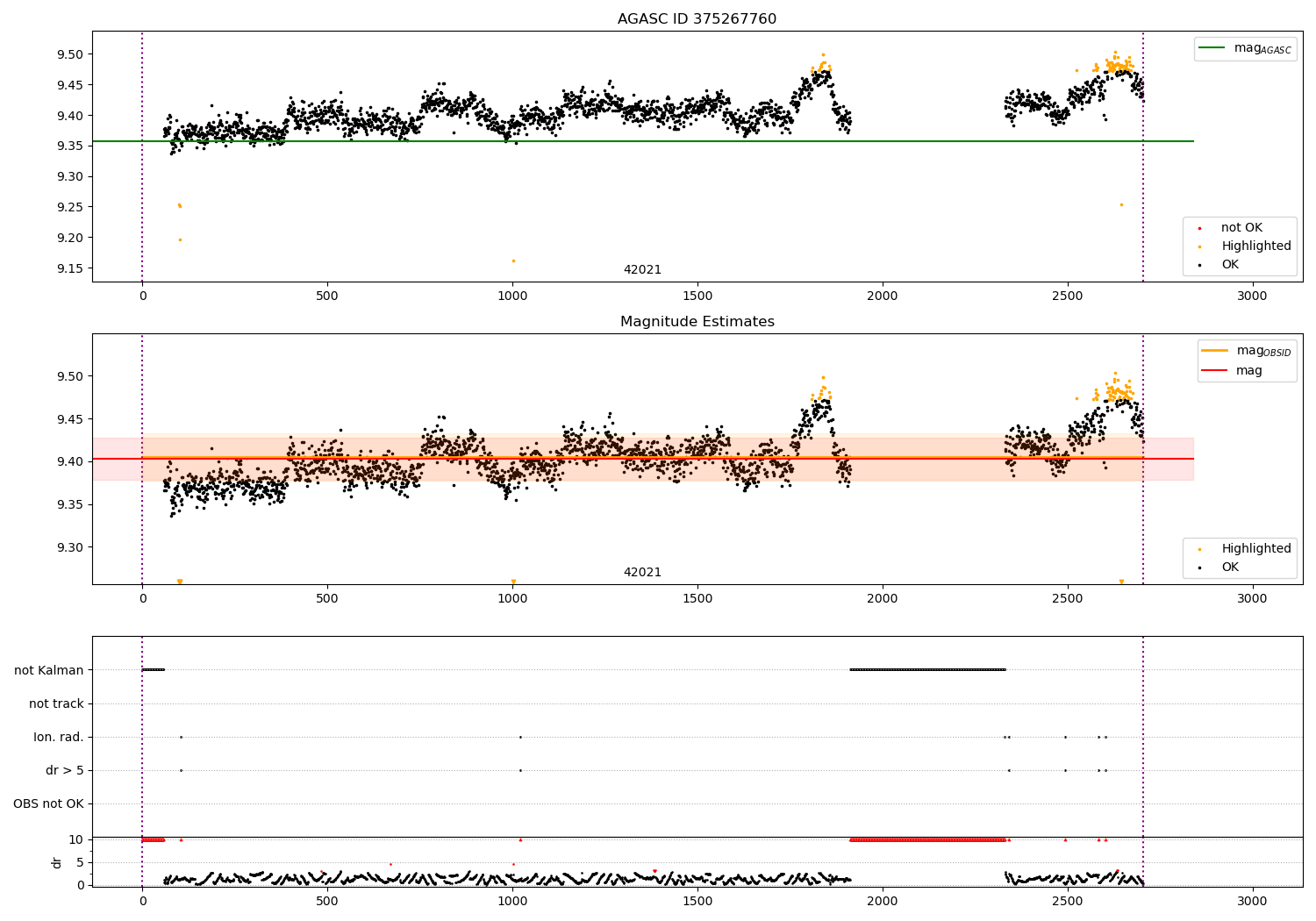 - Kalman samples: Subset of samples when ACA could be tracking stars (AOPCADMD == NPNT & AOACASEQ == KALM)