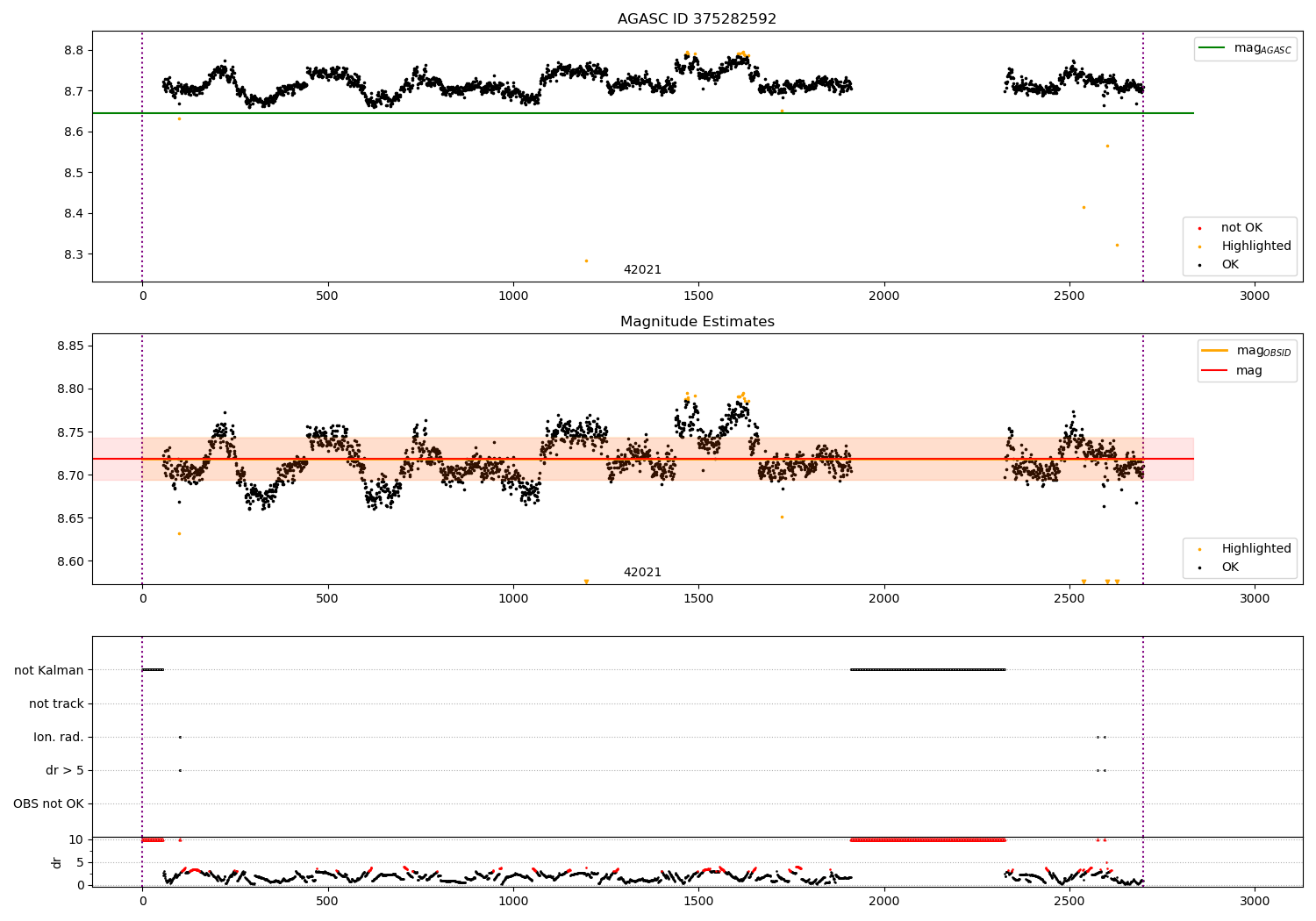 - Kalman samples: Subset of samples when ACA could be tracking stars (AOPCADMD == NPNT & AOACASEQ == KALM)