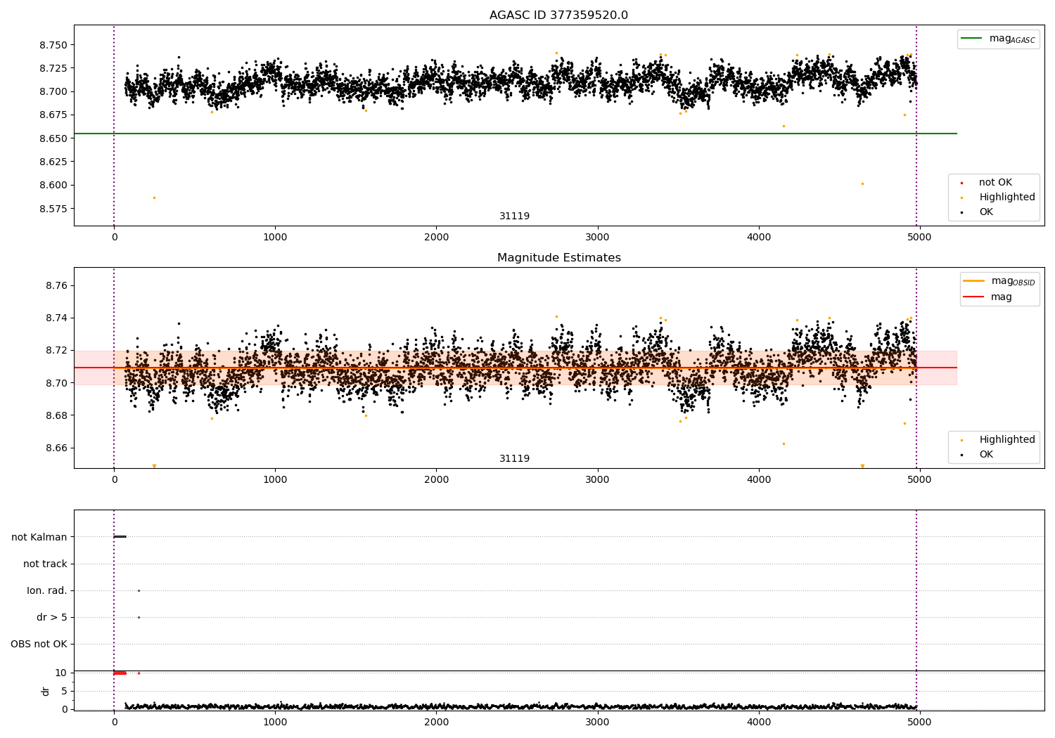 - Kalman samples: Subset of samples when ACA could be tracking stars (AOPCADMD == NPNT & AOACASEQ == KALM)