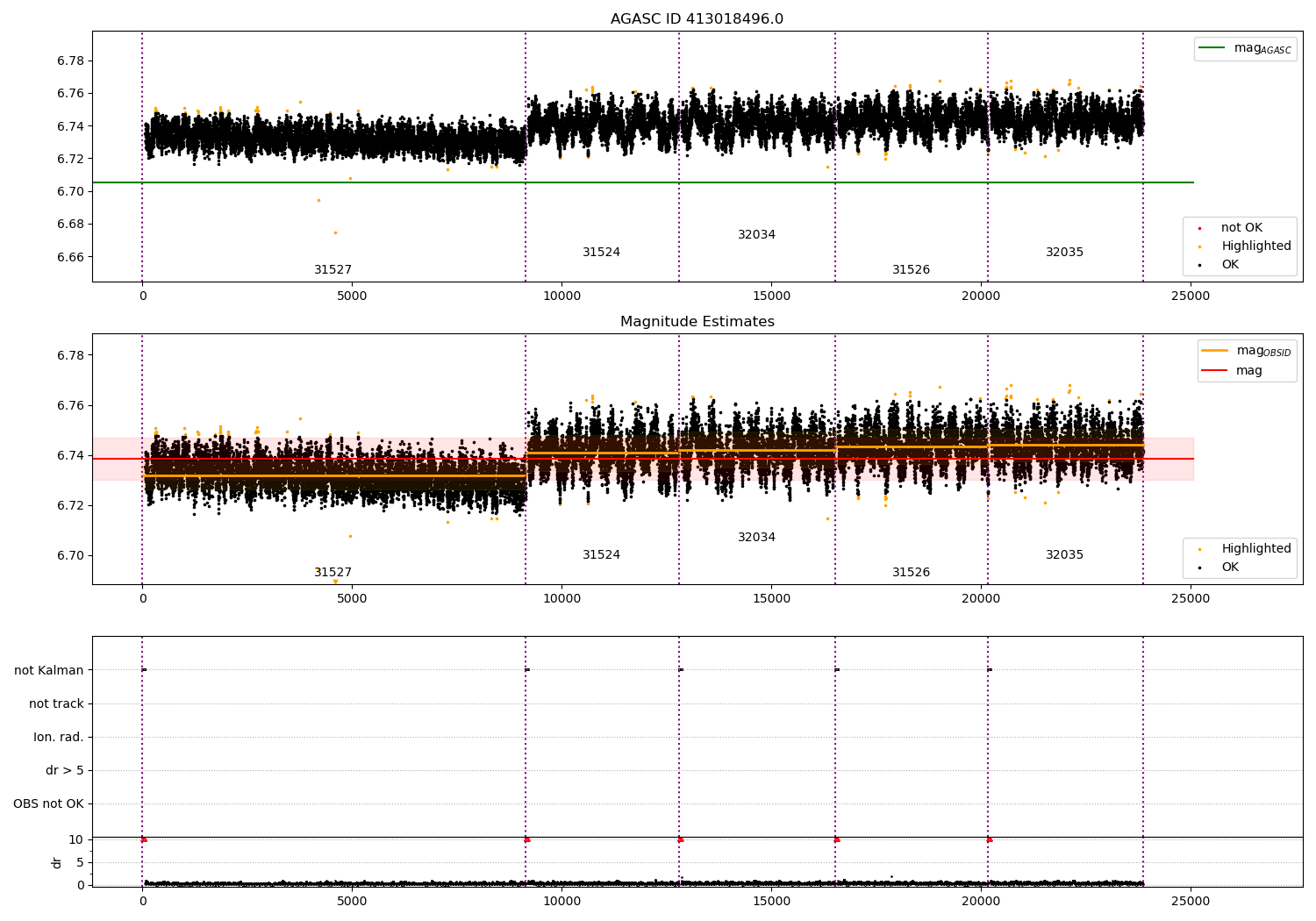 - Kalman samples: Subset of samples when ACA could be tracking stars (AOPCADMD == NPNT & AOACASEQ == KALM)