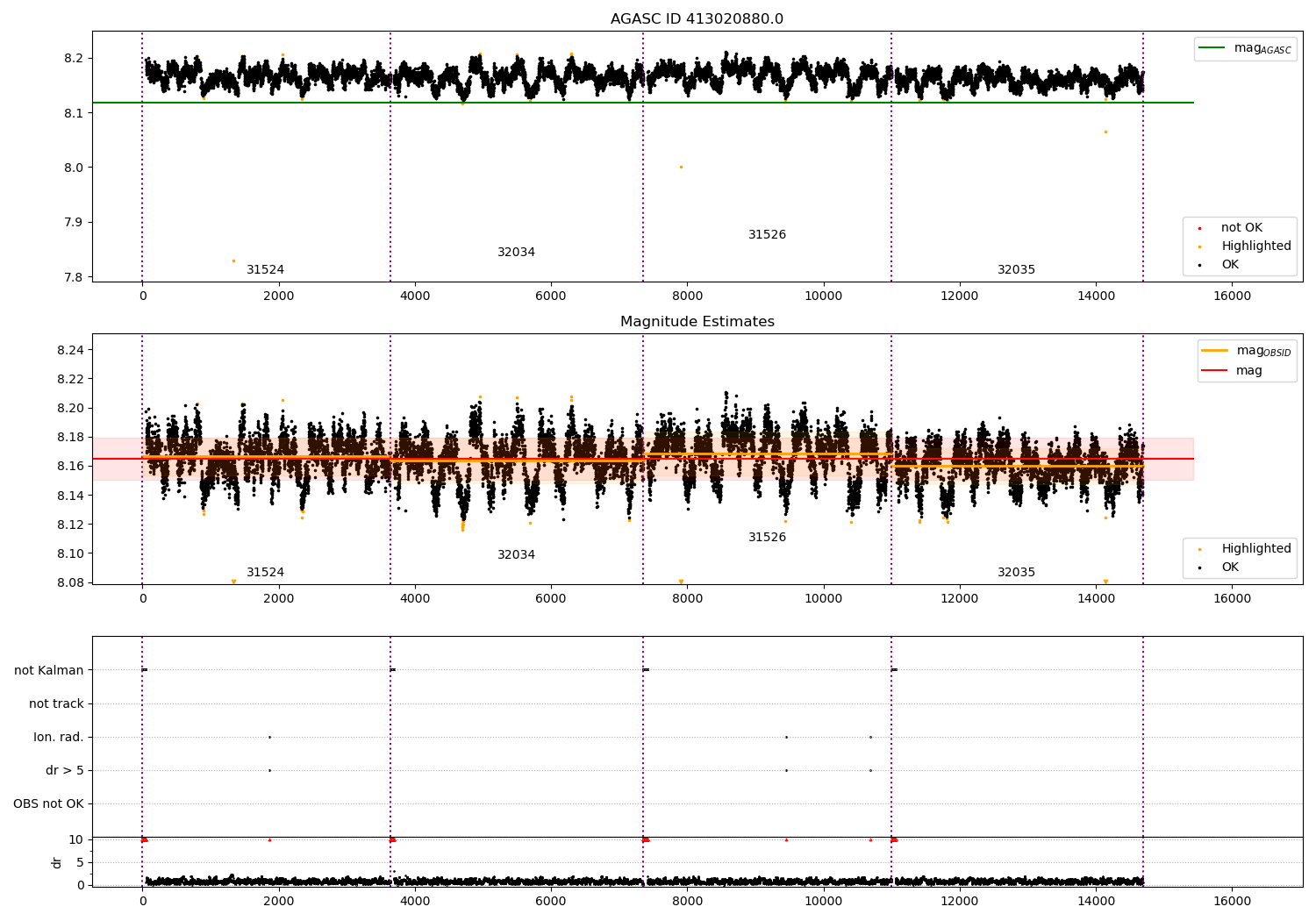 - Kalman samples: Subset of samples when ACA could be tracking stars (AOPCADMD == NPNT & AOACASEQ == KALM)
