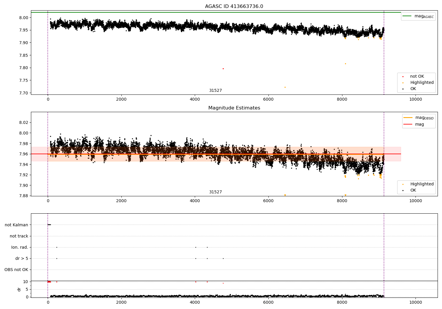 - Kalman samples: Subset of samples when ACA could be tracking stars (AOPCADMD == NPNT & AOACASEQ == KALM)