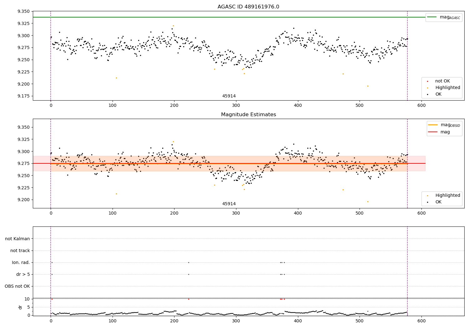 | OBSID | Time | Slot | Row | Col | N | Nok | Nout | ftrack | fdr3 | fdr5 | fok | ⟨ δ mag ⟩ 100s | ⟨ mag ⟩ | σmag | Comments |