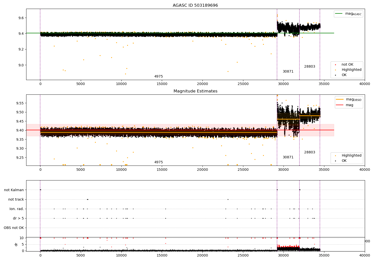 - Kalman samples: Subset of samples when ACA could be tracking stars (AOPCADMD == NPNT & AOACASEQ == KALM)