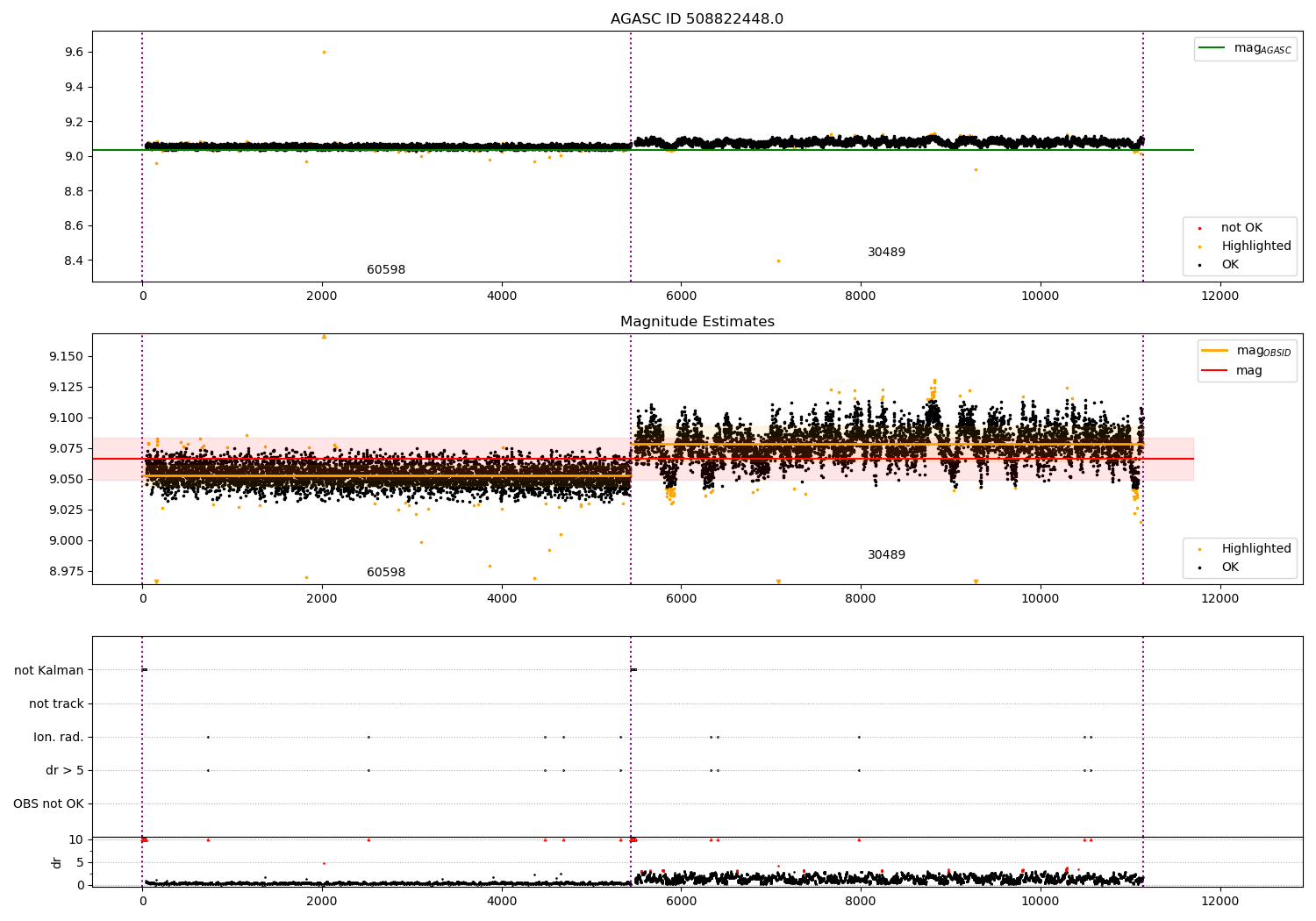 - Kalman samples: Subset of samples when ACA could be tracking stars (AOPCADMD == NPNT & AOACASEQ == KALM)