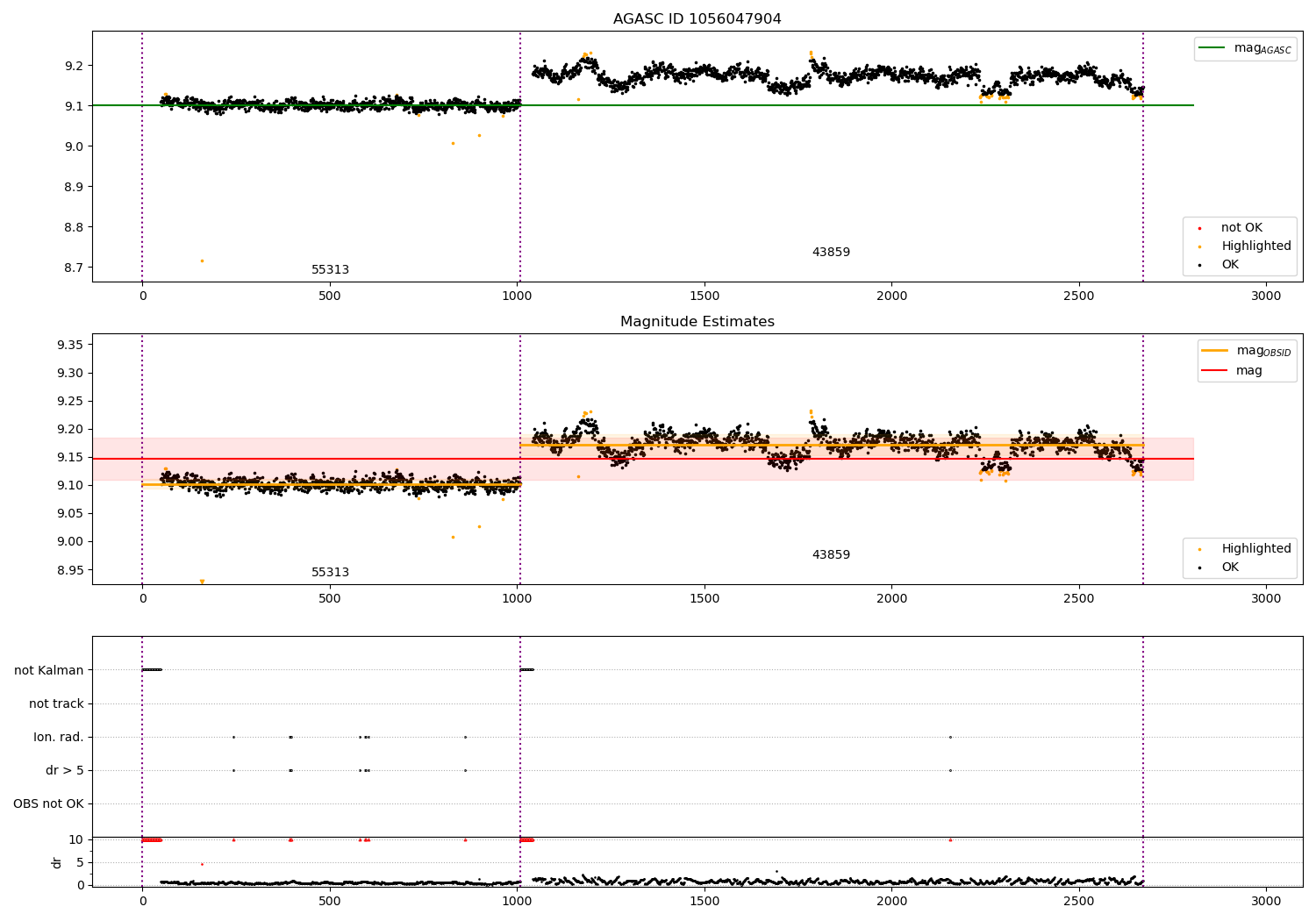 - Kalman samples: Subset of samples when ACA could be tracking stars (AOPCADMD == NPNT & AOACASEQ == KALM)