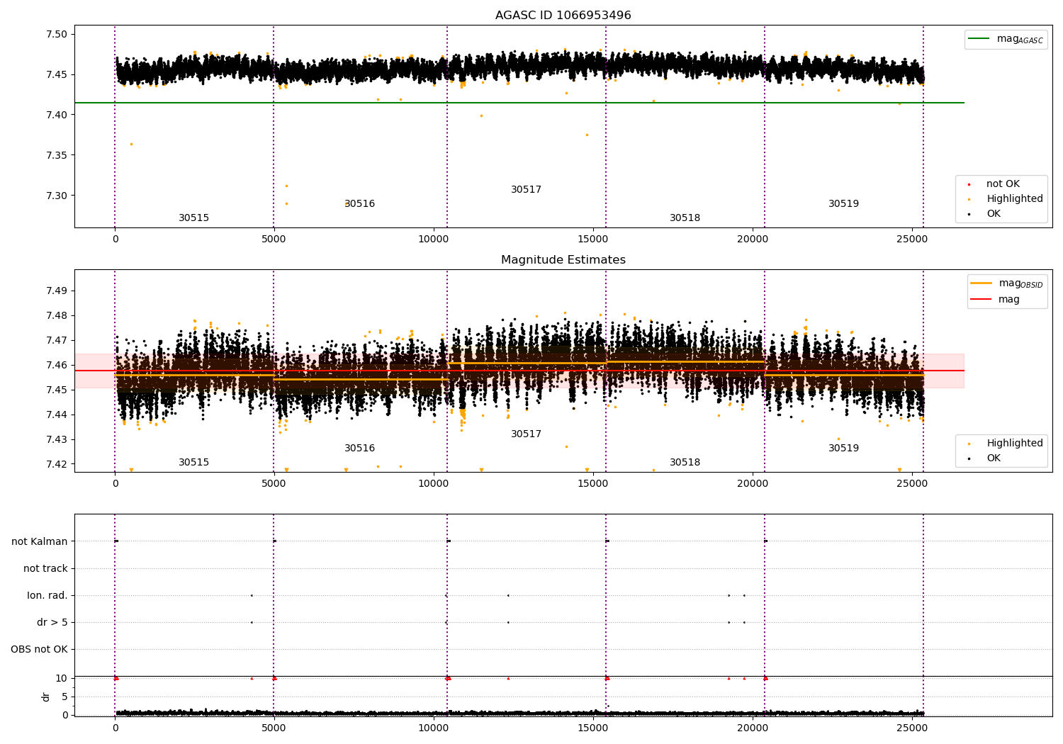 - Kalman samples: Subset of samples when ACA could be tracking stars (AOPCADMD == NPNT & AOACASEQ == KALM)