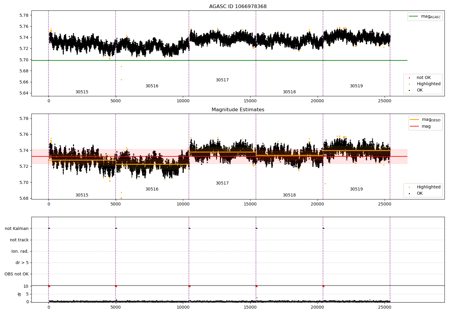 - Kalman samples: Subset of samples when ACA could be tracking stars (AOPCADMD == NPNT & AOACASEQ == KALM)