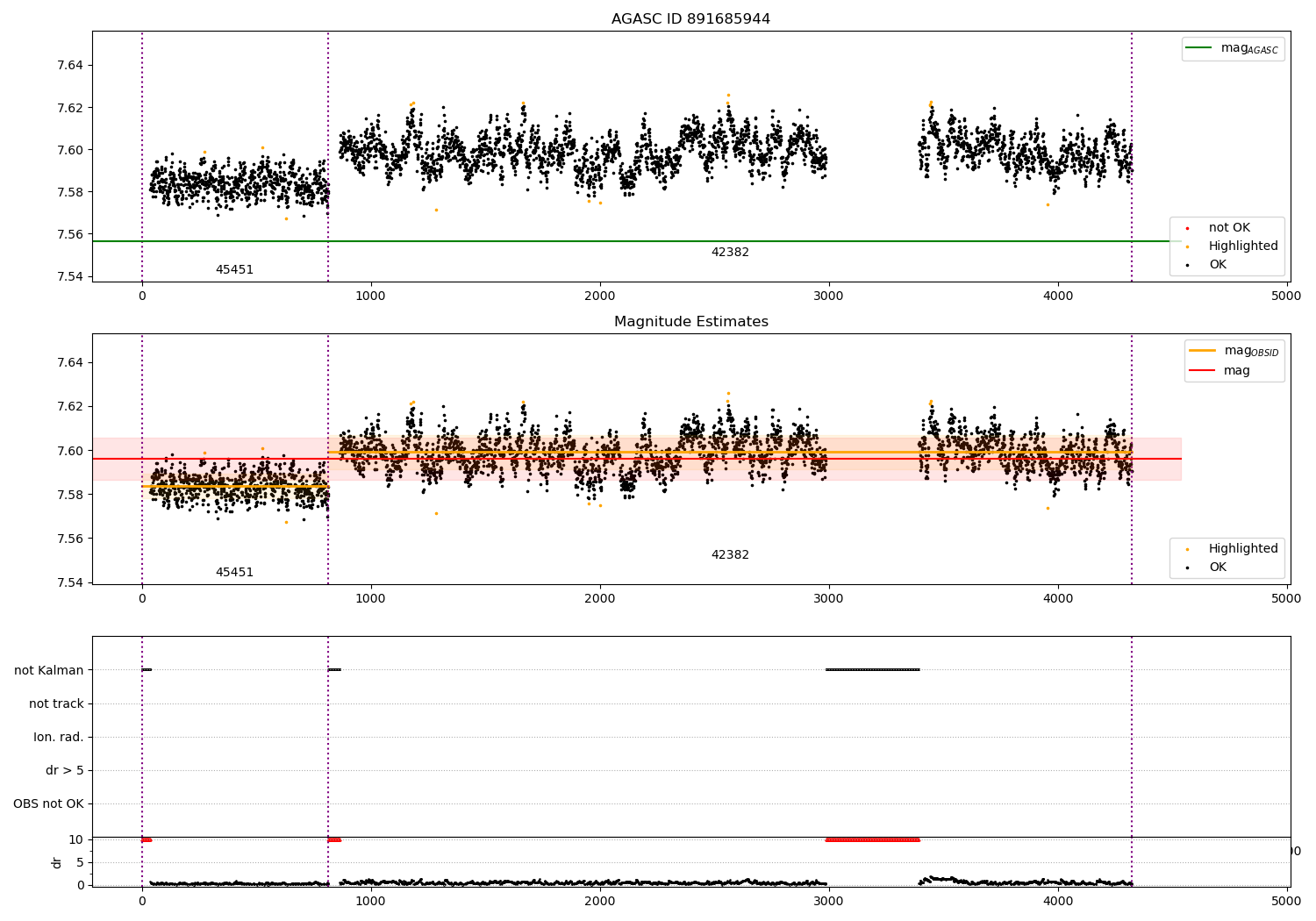 - Kalman samples: Subset of samples when ACA could be tracking stars (AOPCADMD == NPNT & AOACASEQ == KALM)