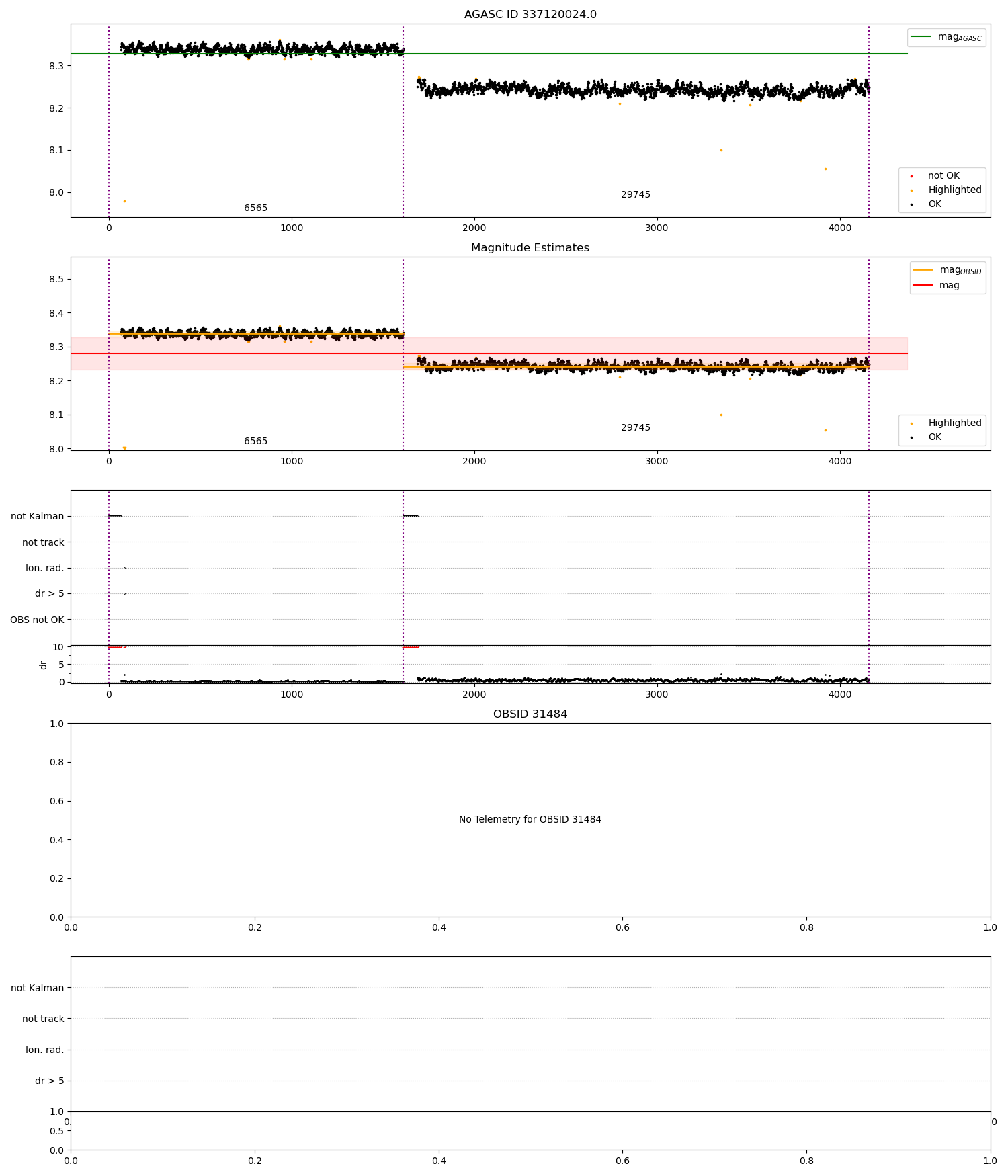 - Kalman samples: Subset of samples when ACA could be tracking stars (AOPCADMD == NPNT & AOACASEQ == KALM)