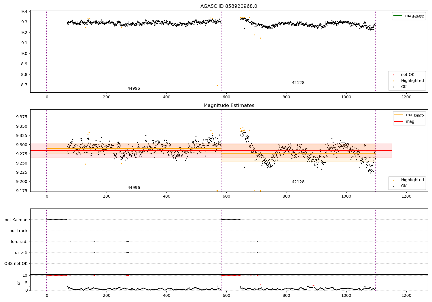 - Kalman samples: Subset of samples when ACA could be tracking stars (AOPCADMD == NPNT & AOACASEQ == KALM)