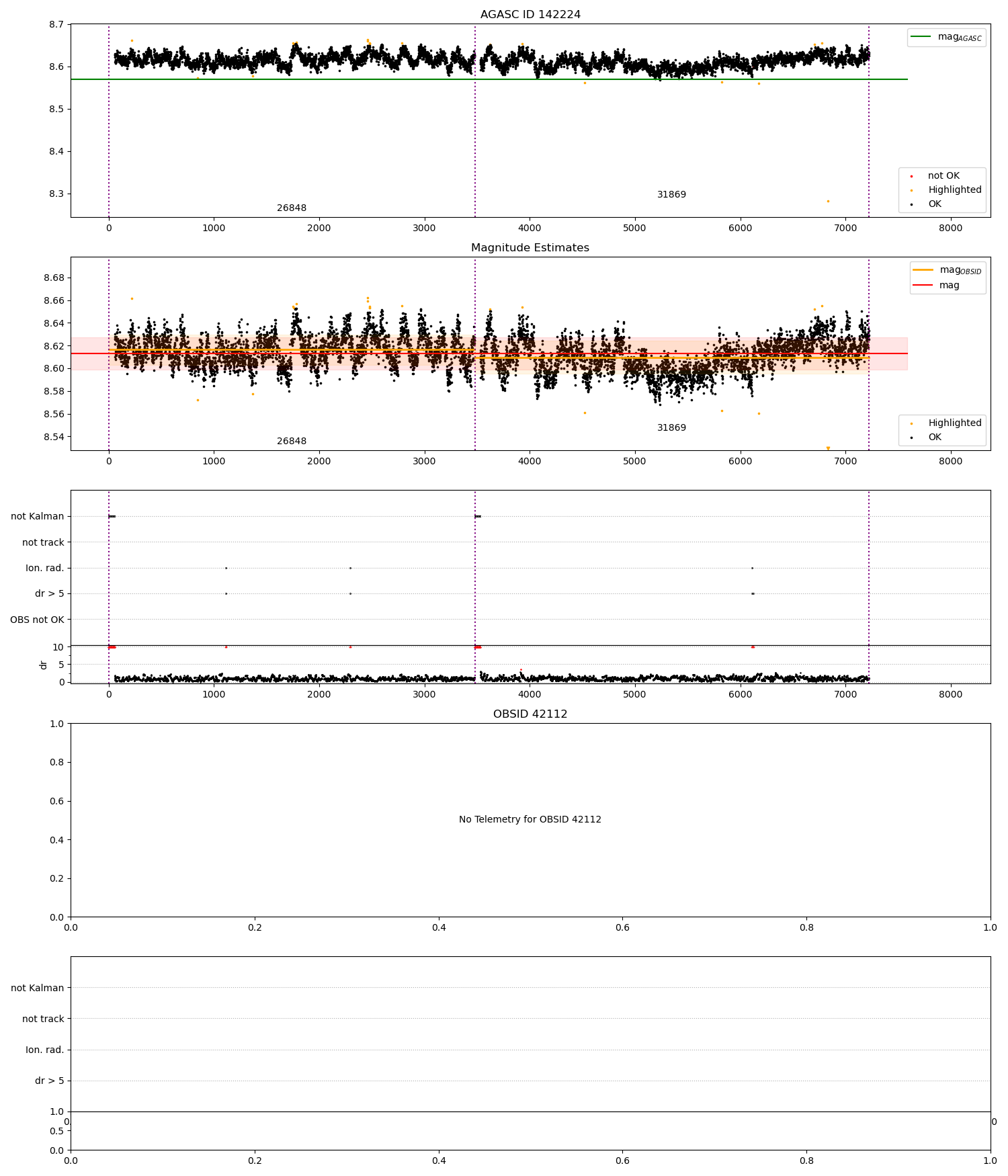 - Kalman samples: Subset of samples when ACA could be tracking stars (AOPCADMD == NPNT & AOACASEQ == KALM)