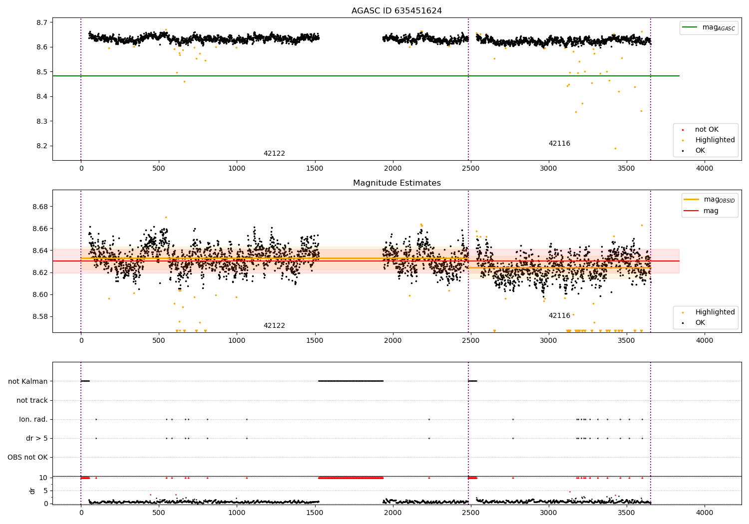 - Kalman samples: Subset of samples when ACA could be tracking stars (AOPCADMD == NPNT & AOACASEQ == KALM)
