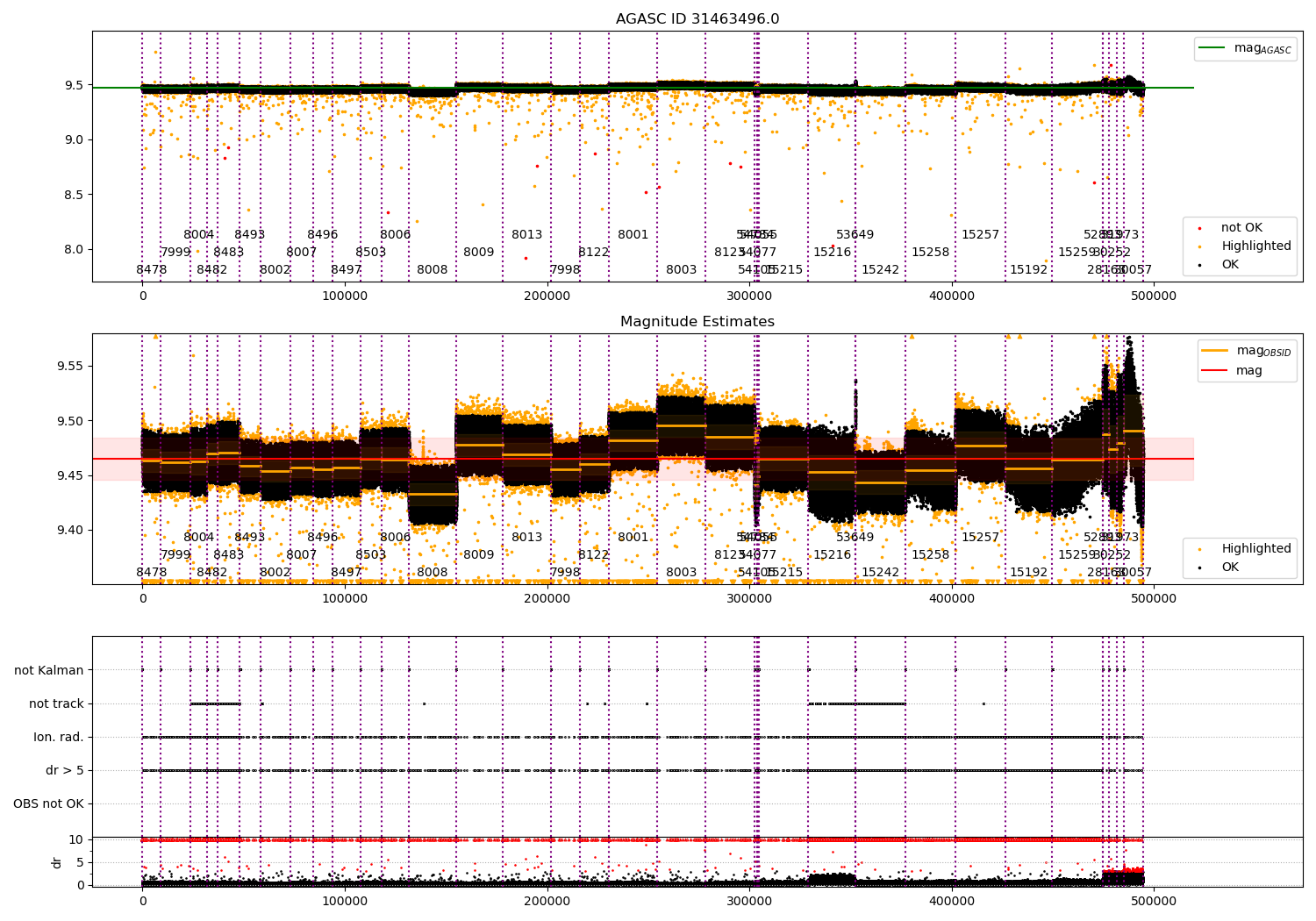 - Kalman samples: Subset of samples when ACA could be tracking stars (AOPCADMD == NPNT & AOACASEQ == KALM)