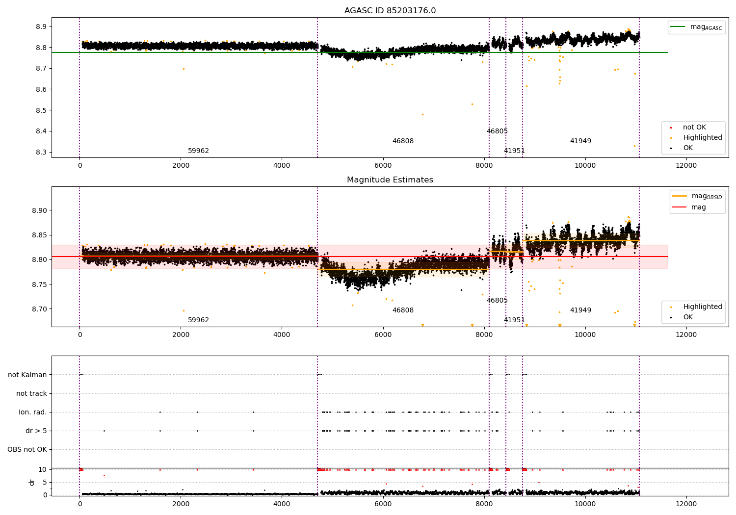 - Kalman samples: Subset of samples when ACA could be tracking stars (AOPCADMD == NPNT & AOACASEQ == KALM)