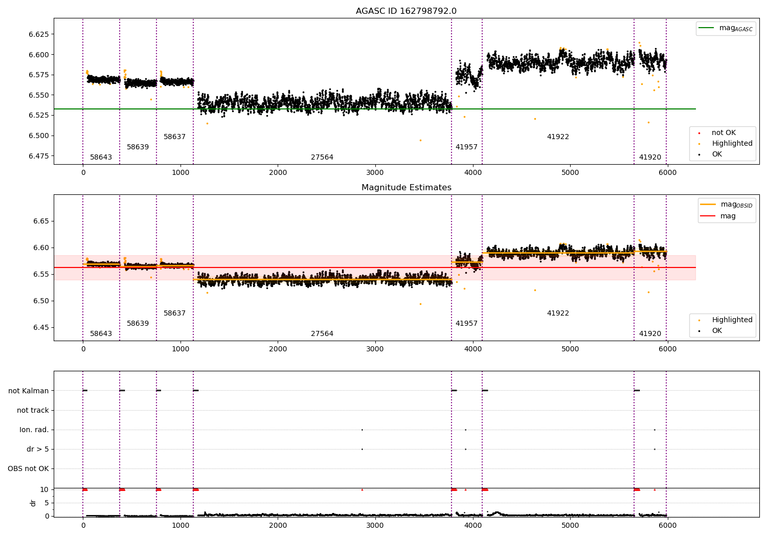 - Kalman samples: Subset of samples when ACA could be tracking stars (AOPCADMD == NPNT & AOACASEQ == KALM)