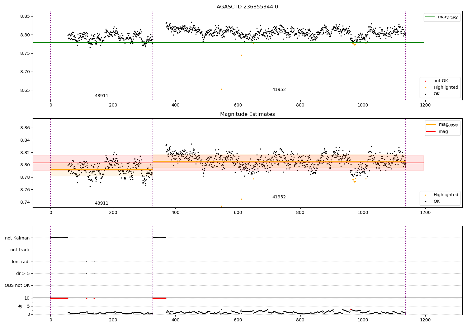 - Kalman samples: Subset of samples when ACA could be tracking stars (AOPCADMD == NPNT & AOACASEQ == KALM)