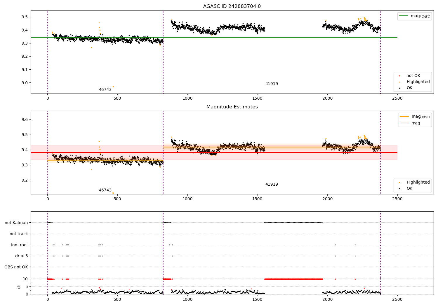 - Kalman samples: Subset of samples when ACA could be tracking stars (AOPCADMD == NPNT & AOACASEQ == KALM)