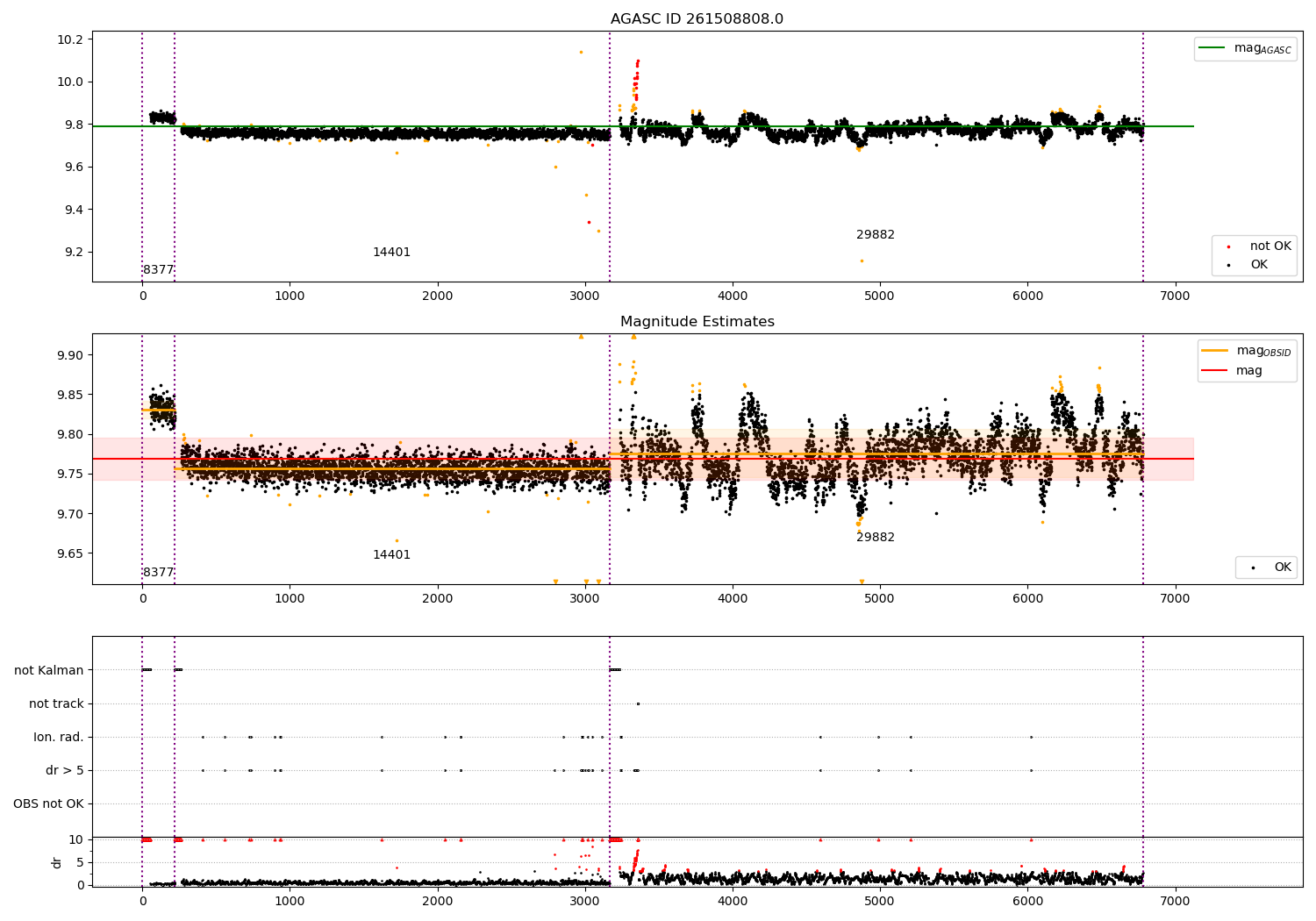 - Kalman samples: Subset of samples when ACA could be tracking stars (AOPCADMD == NPNT & AOACASEQ == KALM)