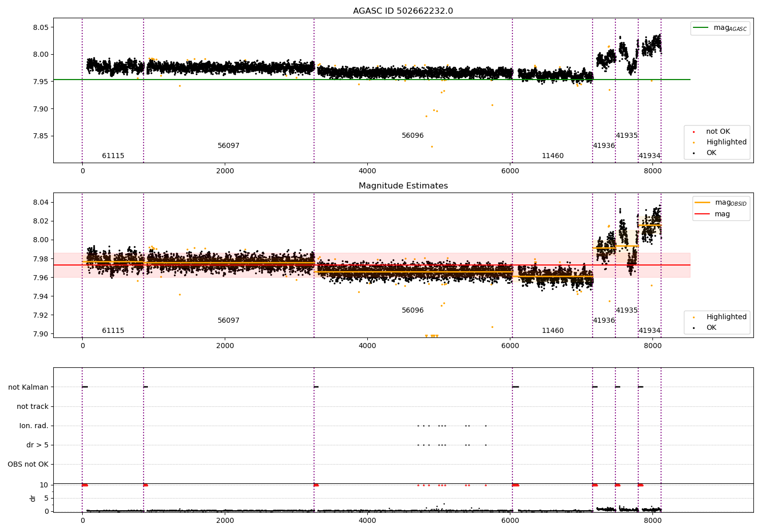 - Kalman samples: Subset of samples when ACA could be tracking stars (AOPCADMD == NPNT & AOACASEQ == KALM)