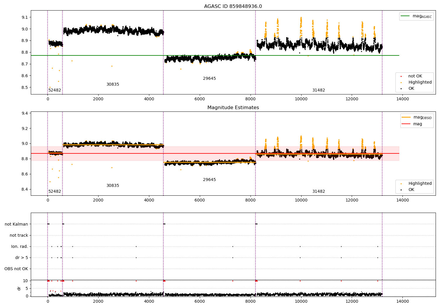 - Kalman samples: Subset of samples when ACA could be tracking stars (AOPCADMD == NPNT & AOACASEQ == KALM)