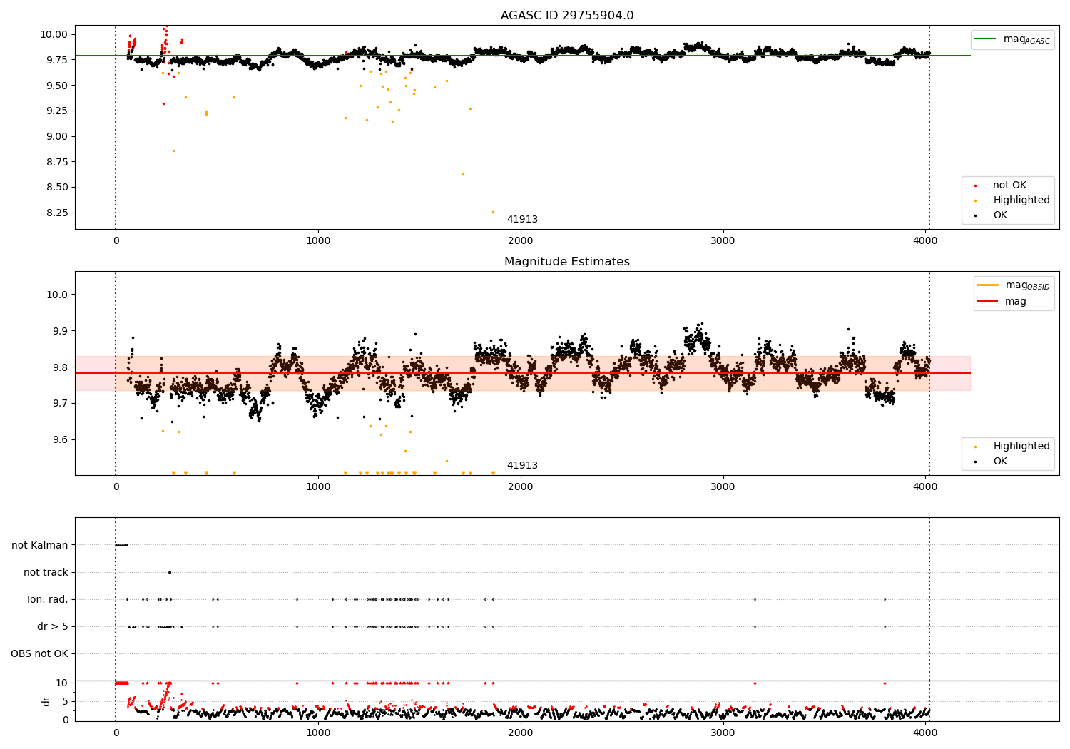 - Kalman samples: Subset of samples when ACA could be tracking stars (AOPCADMD == NPNT & AOACASEQ == KALM)