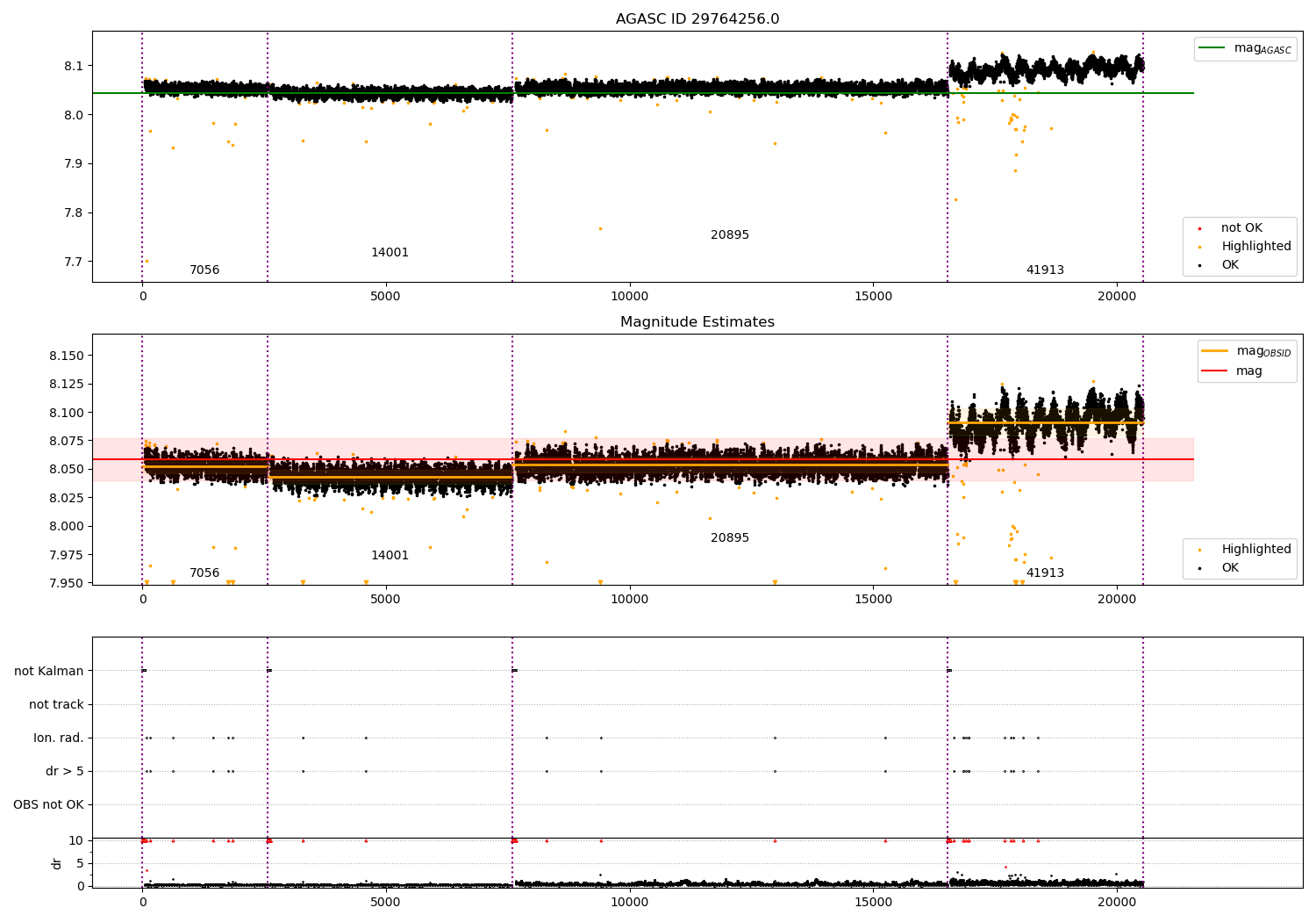 - Kalman samples: Subset of samples when ACA could be tracking stars (AOPCADMD == NPNT & AOACASEQ == KALM)