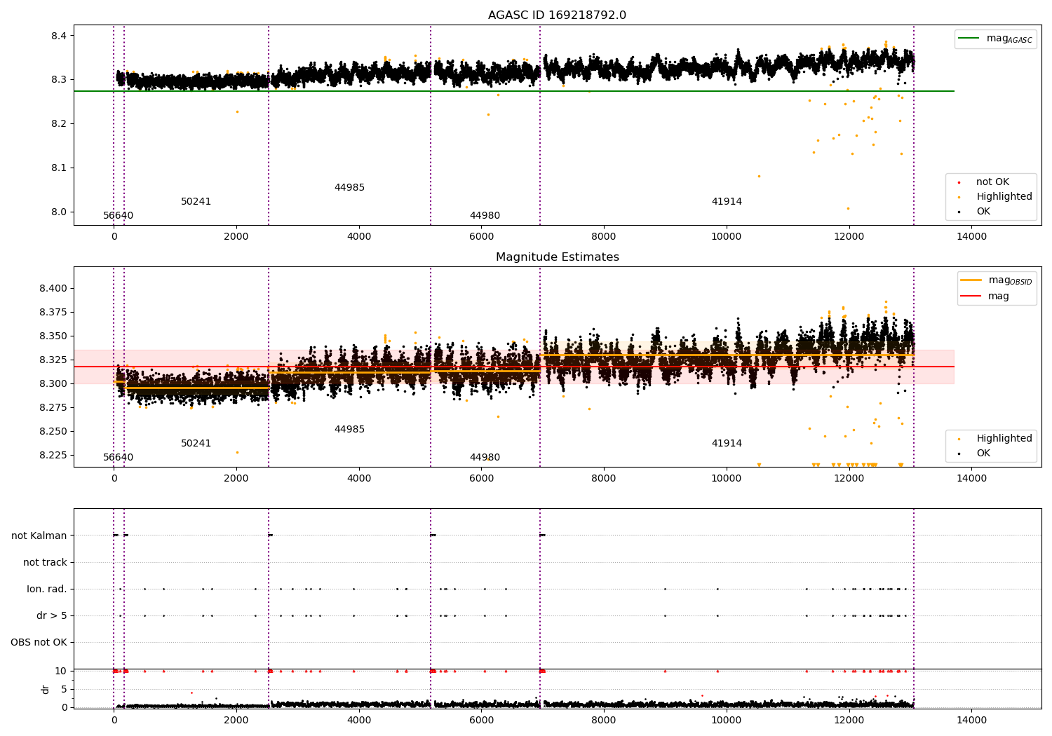 - Kalman samples: Subset of samples when ACA could be tracking stars (AOPCADMD == NPNT & AOACASEQ == KALM)