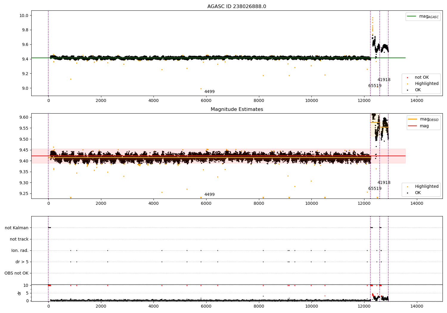 - Kalman samples: Subset of samples when ACA could be tracking stars (AOPCADMD == NPNT & AOACASEQ == KALM)