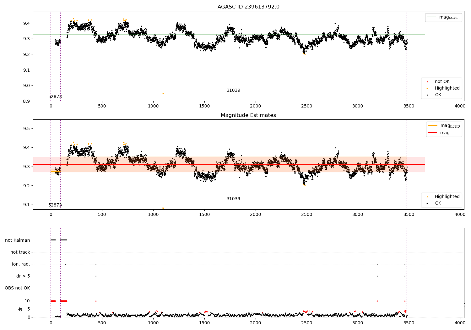 - Kalman samples: Subset of samples when ACA could be tracking stars (AOPCADMD == NPNT & AOACASEQ == KALM)