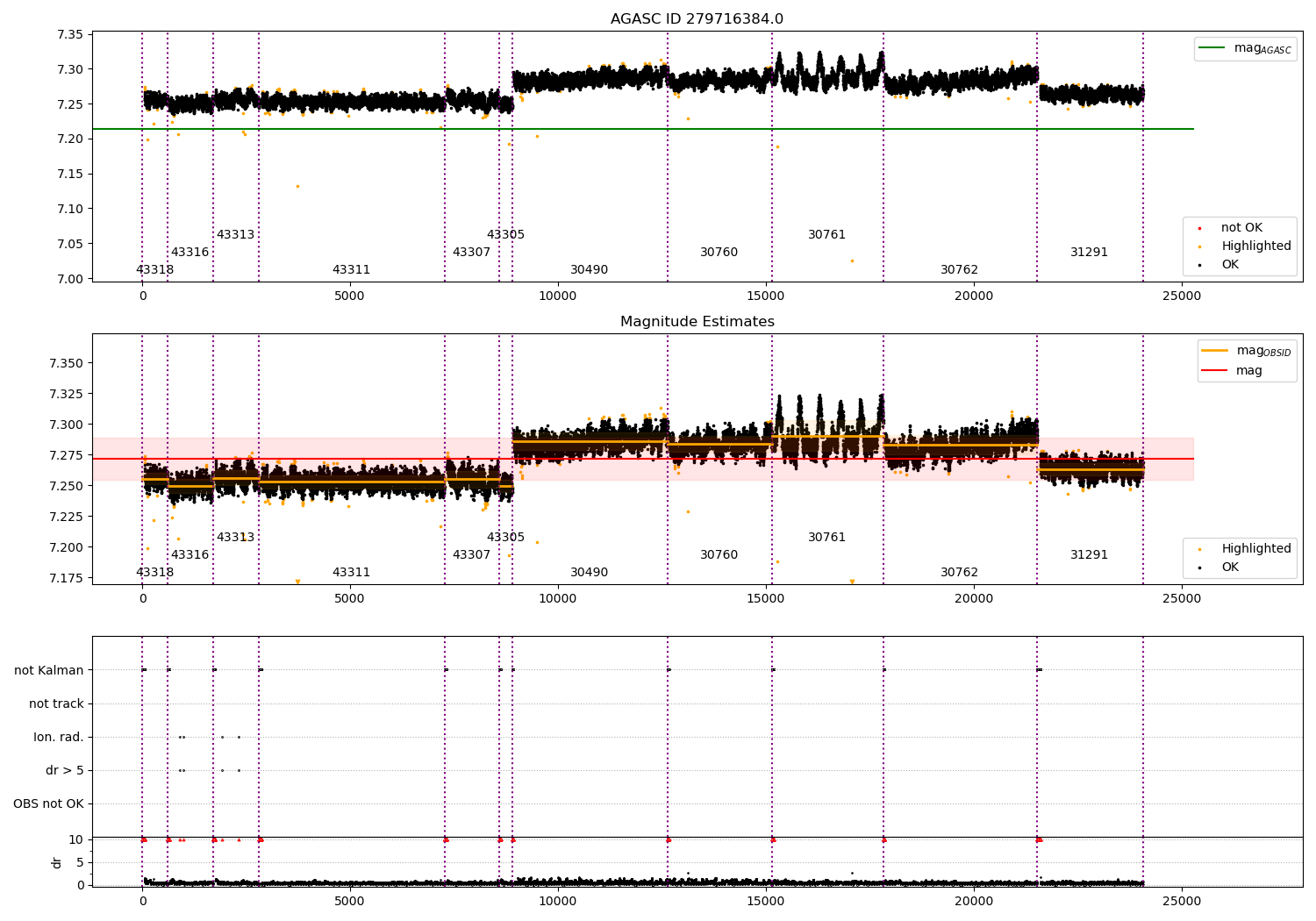 - Kalman samples: Subset of samples when ACA could be tracking stars (AOPCADMD == NPNT & AOACASEQ == KALM)