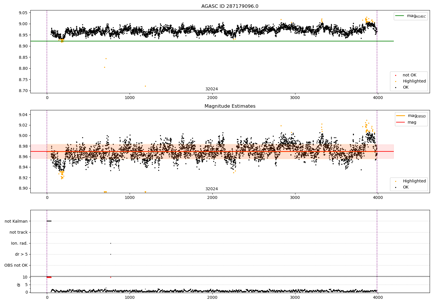 - Kalman samples: Subset of samples when ACA could be tracking stars (AOPCADMD == NPNT & AOACASEQ == KALM)