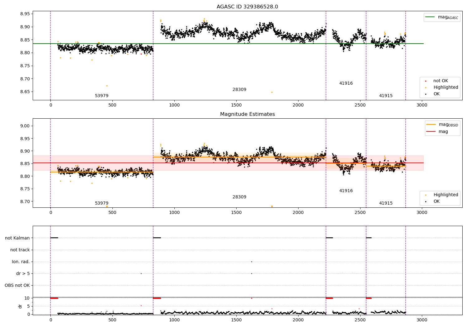- Kalman samples: Subset of samples when ACA could be tracking stars (AOPCADMD == NPNT & AOACASEQ == KALM)