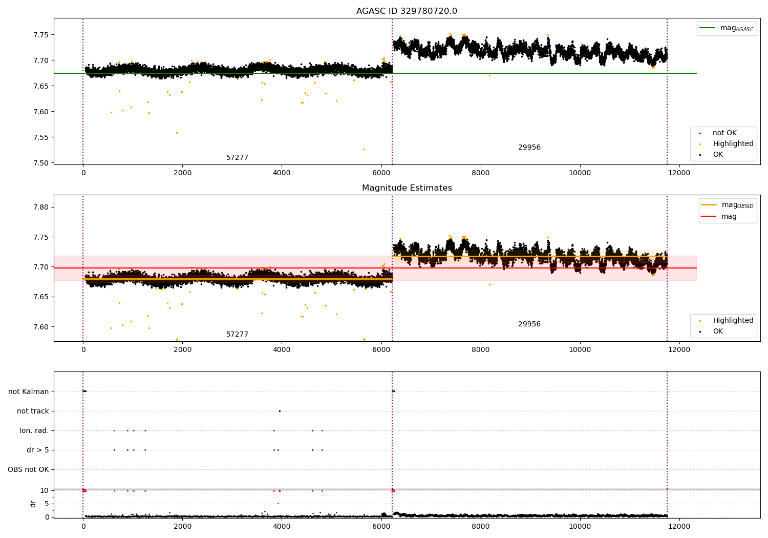 - Kalman samples: Subset of samples when ACA could be tracking stars (AOPCADMD == NPNT & AOACASEQ == KALM)